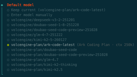 如果你是本地机器性能较好,比如有 Nvidia 的显卡,或者 Mac,你可以在本地部署 LLM,具体的工具有 LLM Studio、 Ollama、vLLM、SGLang 等。当前更方便的办法是购买大模型服务商提供的服务,我这里是使用的火山引擎的 Code Plan Lite 版,不限 token,但是限制次数,基本上也是够用了。当然你也可以选择其他厂商的服务。